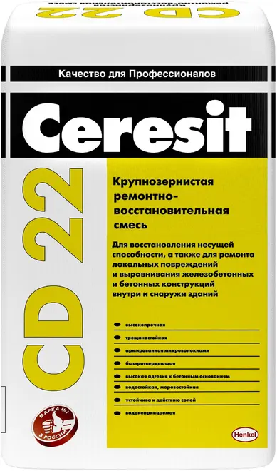 Компания реализует крупнозернистую ремонтно-восстановительную смесь Ceresit CD 22 (25 кг) серую оптом и поштучно. Оперативное обеспечение всеми материалами. Церезит - характеристики, описание, отзывы.