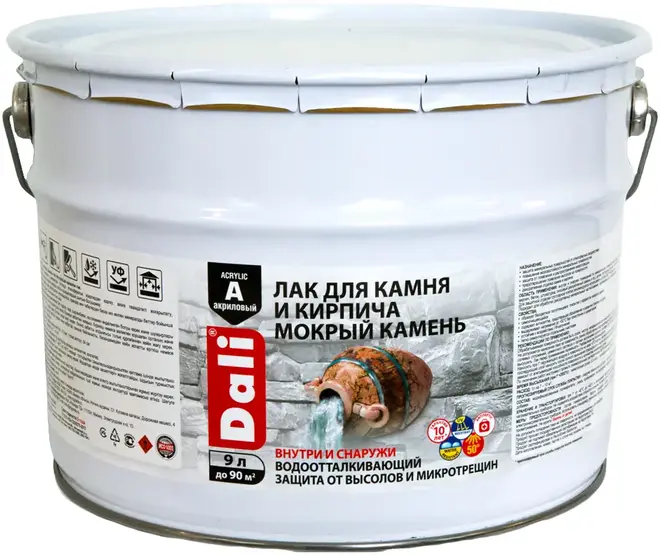 Dali Мокрый Камень лак для камня и кирпича акриловый (9 л)