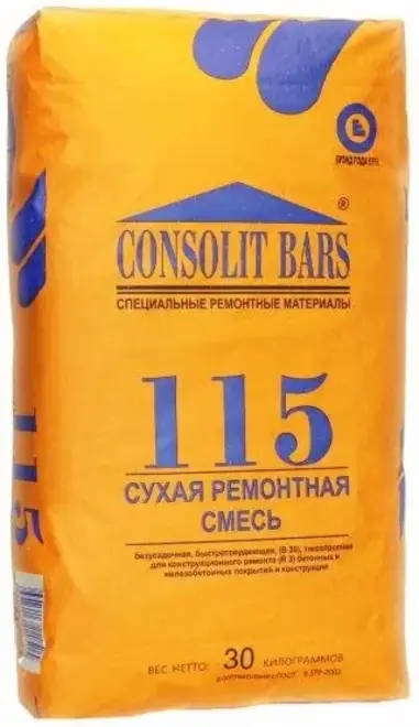 Основание должно быть прочным. С основания удалить бетонную крошку, отслаивающиеся частицы, пыль, остатки краски, битума и масляные пятна. Непрочные и ослабленные участки и цементное молоко удалить механическим способом. Трещины в основании расшить и обеспылить. Глубина ремонтируемых участков: 3-20 мм. Во всех случаях контуры ремонтируемых участков не должны иметь острых углов. Обрезка бетона по контуру должна производиться алмазным инструментом по плоскости, перпендикулярной бетонной поверхности, на глубину не менее 10 мм или глубину разрушенной поверхности с последующим удалением ослабленного бетона. Если разрушения бетона значительны и толщина наносимого ремонтного состава больше 20 мм, провести ремонт с использованием Consolit Bars 114 на горизонтальных поверхностях, Consolit Bars 113 на вертикальных, потолочных и наклонных поверхностях. Если на поверхности конструкции присутствует оголенная арматура или она оголилась вследствие удаления разрушенного бетона, ее следует зачистить с помощью металлической щетки. Для защиты от коррозии арматуру обработать антикоррозийной грунтовкой-праймером Consolit Bars 105. При укладке смеси на площадях более 0,25 м² использовать штукатурную сетку, закрепленную к основанию анкерами. Зазор между штукатурной сеткой и дном ремонтируемого участка: не менее 10 мм, слой растворной смеси над ней: не менее 20 мм. Можно наносить смесь в два слоя: первый слой не заглаживать, второй наносить через 20-30 минут, разглаживая поверхность шпателем. Если на ремонтируемой поверхности имеются активные протечки (подпор) воды, такие протечки надо ликвидировать при помощи ремонтного состава Consolit Bars 100. Перед нанесением растворной смеси ремонтируемую поверхность увлажнить чистой водой до полного насыщения. Для предотвращения вытягивания влаги старым бетоном из наносимого ремонтного состава пылящие, сильно впитывающие влагу поверхности и поверхности после монтажа арматуры обработать специализированной грунтовкой-праймером глубокого проникновения Consolit Bars 150 на два слоя по влажной, но не мокрой поверхности.