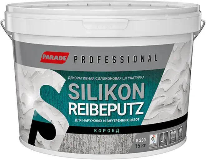 Поставляем декоративную силиконовую штукатурку Parade Professional S230 Silikon Reibeputz (15 кг) белую с центрального склада. Обеспечение торговых фирм всей номенклатурой. Парад Профешнл - описание и технические характеристики.