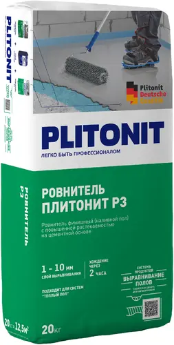 Плитонит Р3 ровнитель финишный (наливной пол с повышенной растекаемостью (20 кг)