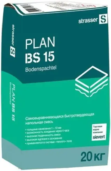 Растворную смесь необходимо вылить непосредственно на основание и распределить с помощью широкого металлического шпателя или ракли, придерживая слегка под наклоном для создания слоя требуемой толщины от 1 до 10 мм. При укладке в качестве финиша деревянных покрытий (ламинат, паркет) толщина слоя должна быть минимум 3 мм. После укладки смеси на основание, необходимо прокатать поверхность игольчатым валиком для лучшей растекаемости и удаления пузырьков воздуха (деаэрации) из слоя смеси. Рекомендуемая температура основания перед нанесением состава PLAN BS 15 составляет от +15° C до +20° C. Смесь можно смешивать и подавать механизированным способом с помощью соответствующего оборудования, обеспечивающего точную дозировку воды и качественное перемешивание без воздухововлечения.
