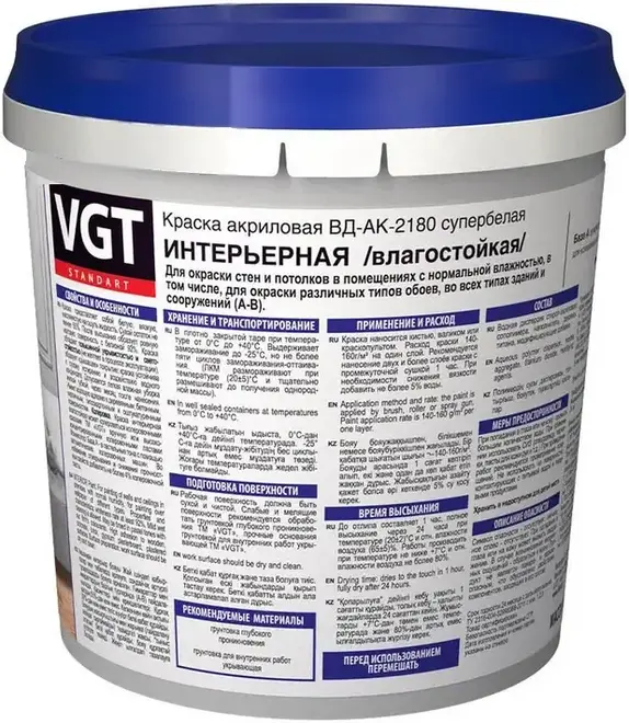 Поставляем краску интерьерную акриловую матовую для стен ВГТ ВД-АК-2180 Superwhite (1.5 кг) оптом и поштучно. Скидки для постоянных клиентов и торговых организаций. VGT ВД-АК-2180 - обсуждение, консультации.
