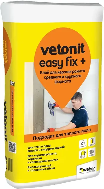 Вебер Ветонит Easy Fix+ клей для керамогранита среднего и крупного формата (25 кг)